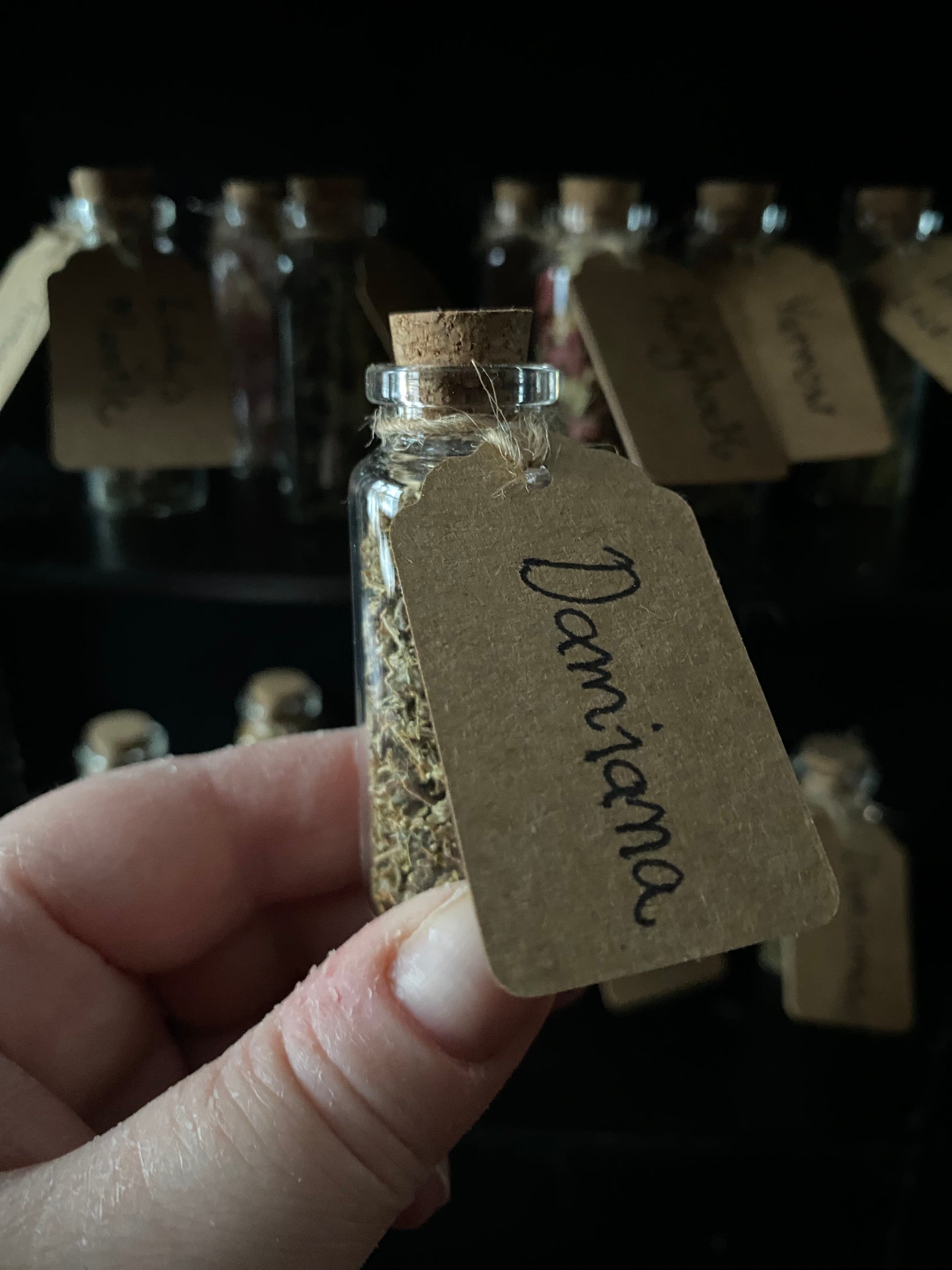 These damiana leaves are organically grown but not locally (our climate is too cold).They are sold in a 20 ml glass jar with cork.